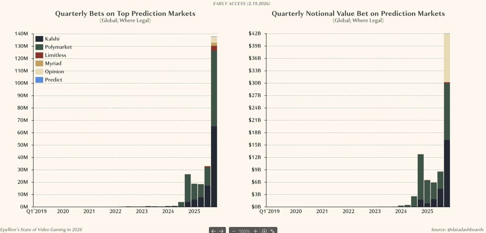What's interesting when looking at what's worked so far, is that each vertical has broken out by latching on to a new audience and using that as the key driver for growth. Perps is gambling for whales, memes is gambling for influencers and tiktok zoomers, prediction markets is gambling for sports/politics nerds, etc. What nobody has cracked yet are the hardcore gamers.There's been many attempts. All have failed to pass either the base quality bar (hardcore gamers have an extremely refined "bullshit" meter), or have lacked a strong financialized entertainment formula and risk loop. Financialized games are extremely hard to do correctly. But the potential market is just too big to ignore. In the US, there's 5.6x as many gamers as active crypto, prediction market, or casino users. Most would never deposit into a casino to spin slots or trade crypto. But they'd be much easier to convince to play high-stakes degen games.