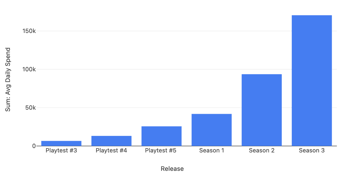 We've been building each core component step by step, originally with playtests, and more recently shifting into ~2 week long Seasons. With the most recent 2 releases, we've started to see a rapid uptick in key metrics.